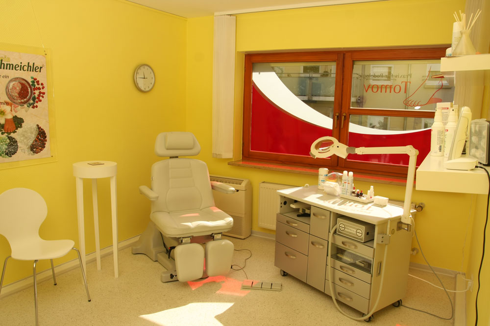 In meiner Praxis stehen Ihnen 3 Behandlungsräume zur Verfügung. Diese sind mit dem neuesten Inventar aus der Podologie ausgestattet. Auf einem höheneinstellbaren, komfortablen und ergonomischen Behandlungsstuhl können Sie sich während der Fußbehandlung komplett entspannen, z. B. bei einer Tasse Kaffee oder Tee.